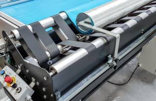 Manual or electrical raw material roll support units. Electrical systems also available with optical sensor based material edge detection for continuous straight material feeding of material onto cutter.